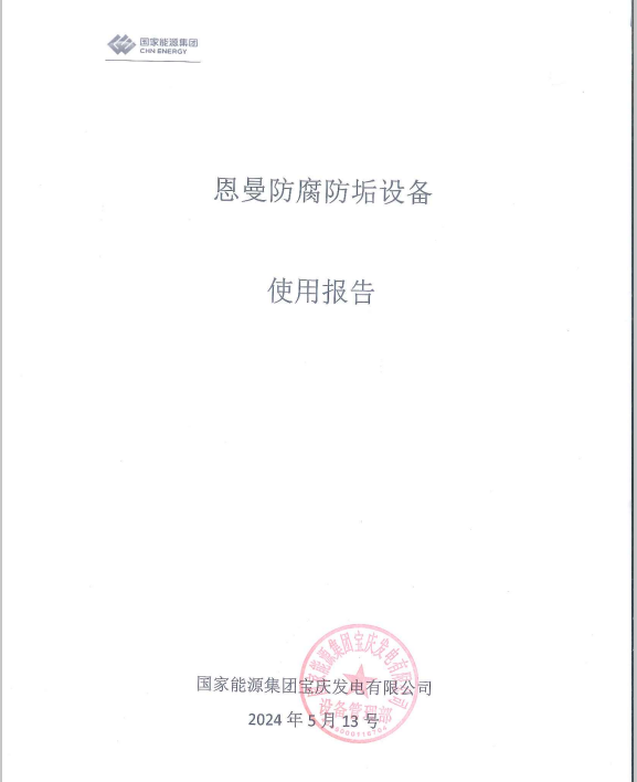 國能新疆化工安裝恩曼裝置使用報(bào)告