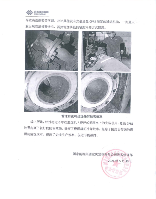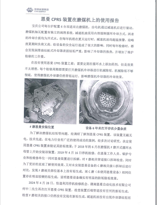恩曼CPRS裝置在國家能源集團(tuán)寶慶發(fā)電有限公司磨煤機(jī)上安裝使用報(bào)告