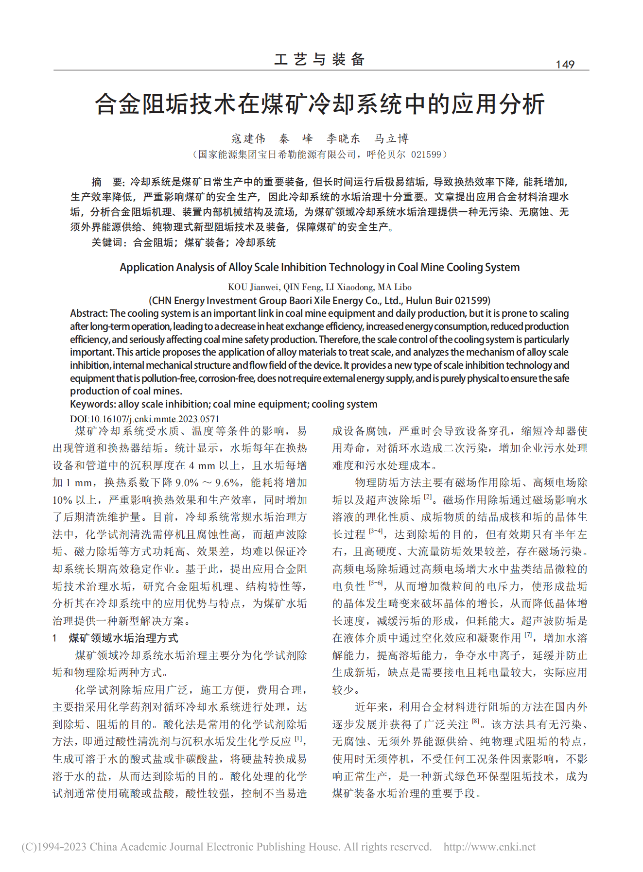 合金阻垢技術(shù)在煤礦冷卻系統(tǒng)中的應(yīng)用分析